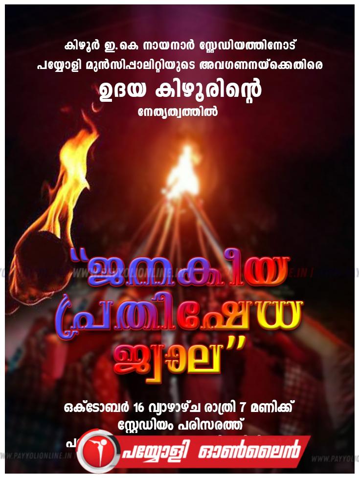 പയ്യോളി ; കിഴൂർ ഇ.കെ. നായനാർ സ്റ്റേഡിയത്തിനോട് പയ്യോളി മുനിസിപ്പാലിറ്റിയുടെ അവഗണക്കെതിരെ ഉദയ കിഴൂരിന്റെ നേതൃത്വത്തിൽ “ജനനകീയ പ്രതിരോധ ജ്വാല” പരിപാടി സംഘടിപ്പിക്കുന്നു. ഇന്ന്  രാത്രി 7 മണിക്ക് സ്റ്റേഡിയം പരിസരത്താണ് ചടങ്ങ് നടക്കുന്നത്.