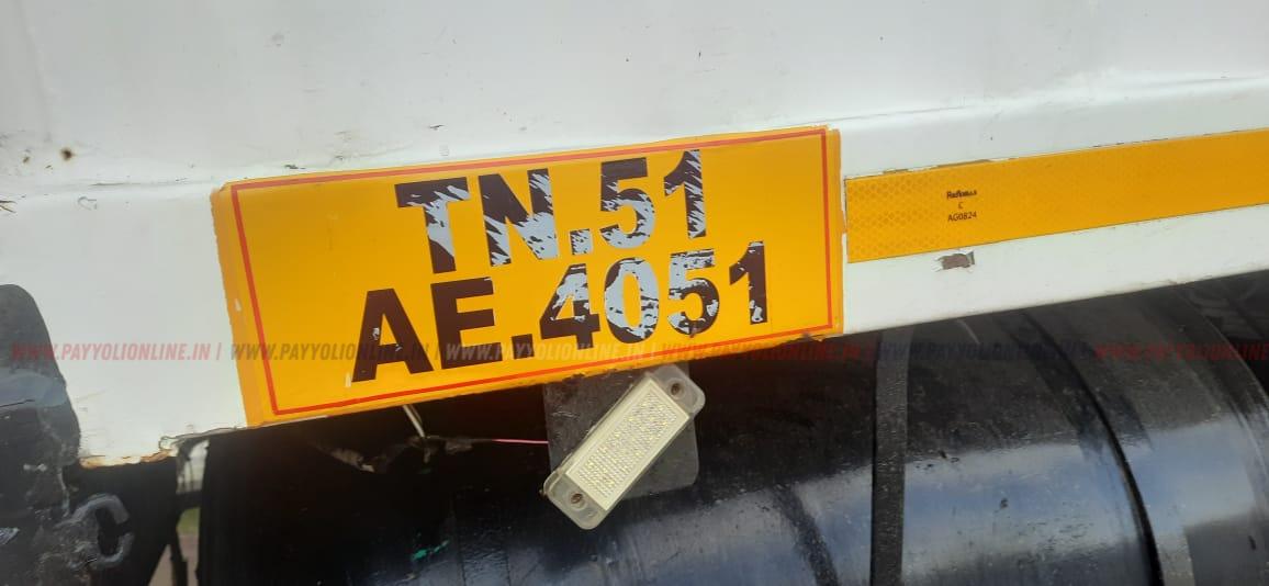 കൂടാതെ, പിൻവശത്തെ നമ്പർ ഭാഗികമായി സ്റ്റിക്കർ ഉപയോഗിച്ച് മറച്ച നിലയിലുമായിരുന്നു. ഉടൻ തന്നെ നാട്ടുകാർ പയ്യോളി പോലീസിൽ വിവരം അറിയിച്ചു. റിതിക സീ ഫുഡ്സിന്റേതാണ് ഈ കണ്ടെയ്നർ ലോറി.