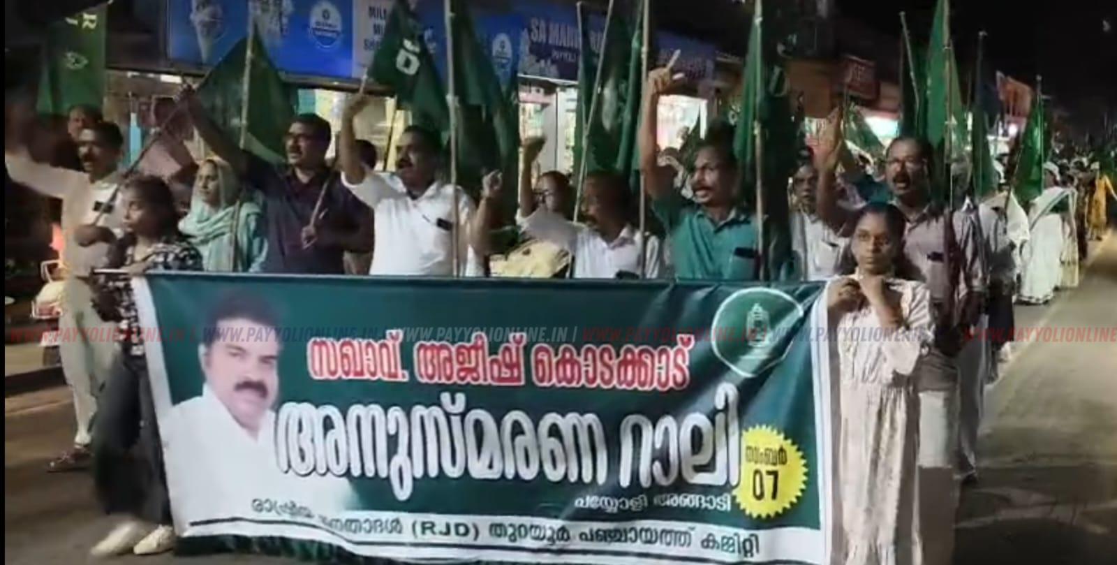 വൈകീട്ട് പയ്യോളി അങ്ങാടിയിൽ ബാൻ്റ് വാദ്യത്തിൻ്റെ അകമ്പടിയോടെ നടന്ന അനുസ്മരണ റാലിയിൽ നിരവധി പ്രവർത്തകർ പങ്കെടുത്തു. തുടർന്ന് നടന്ന പൊതുസമ്മേളനം ആർ ജെ.ഡി ജില്ലാ പ്രസിഡണ്ട് എം.കെ. ഭാസ്ക്കരൻ ഉദ്ഘാടനം ചെയ്തു. ആർ ജെ.ഡി തുറയൂർ പഞ്ചായത്ത് കമ്മിറ്റി പ്രസിഡൻ്റ് ടി.എം രാജൻ ആധ്യക്ഷനായി. പേരാമ്പ്ര മണ്ഡലം പ്രസിഡൻ്റ് പി. മോനിഷ അനുസ്മരണ പ്രഭാഷണം നടത്തി. ജില്ലാ കമ്മിറ്റി അംഗം കെ.ടി.രതീഷ്, കെ.വി ബാലൻ, സി.കെ. ശശി, ഒ.എം സതീശൻ എന്നിവർ സംസാരിച്ചു.