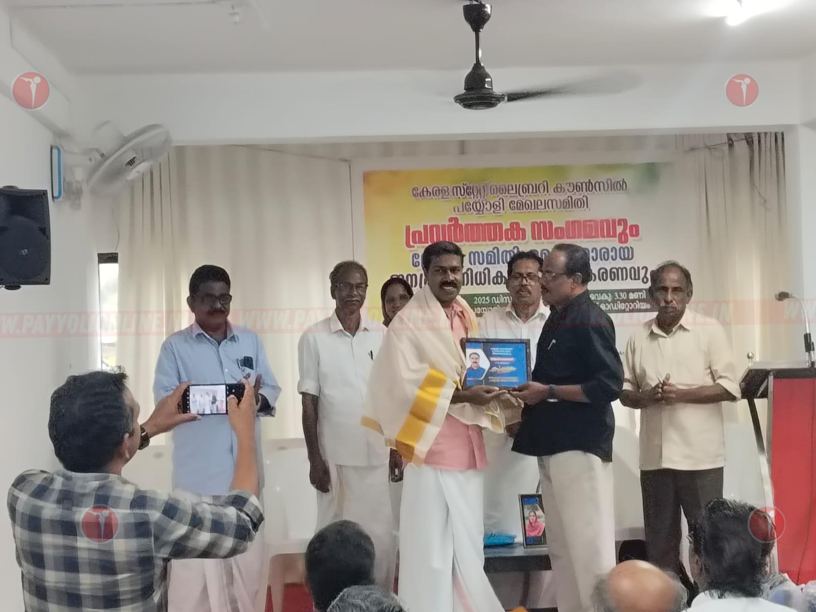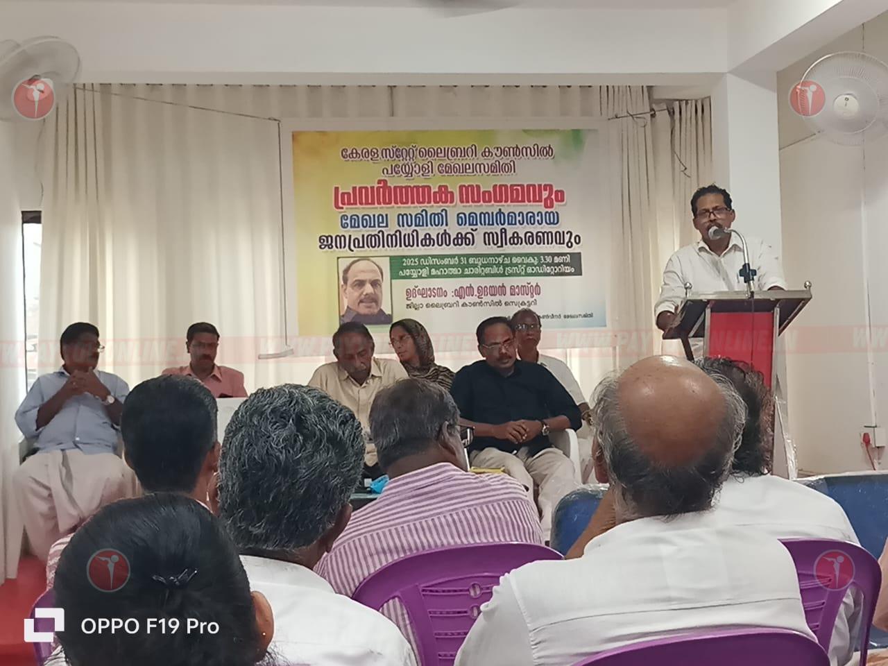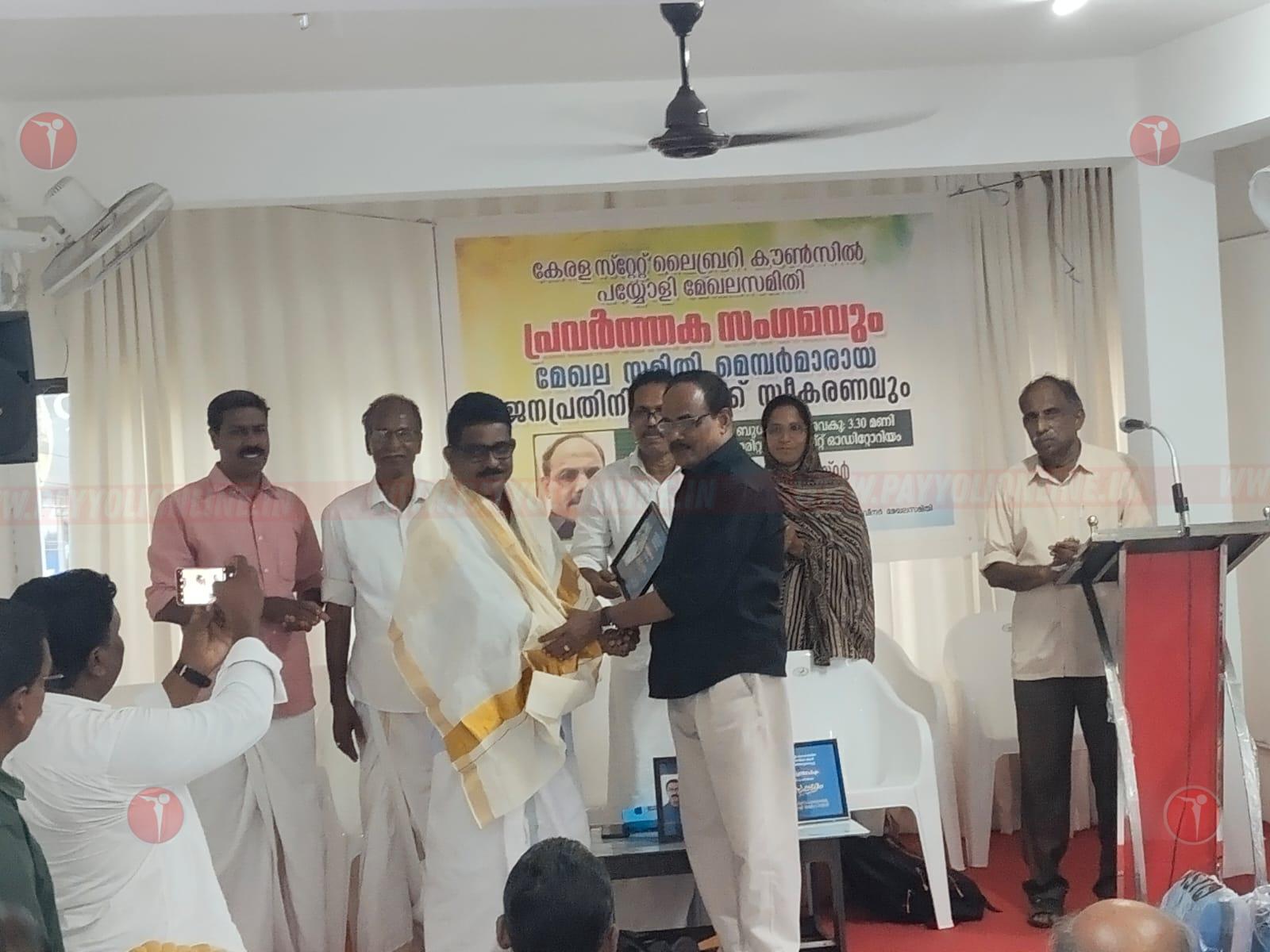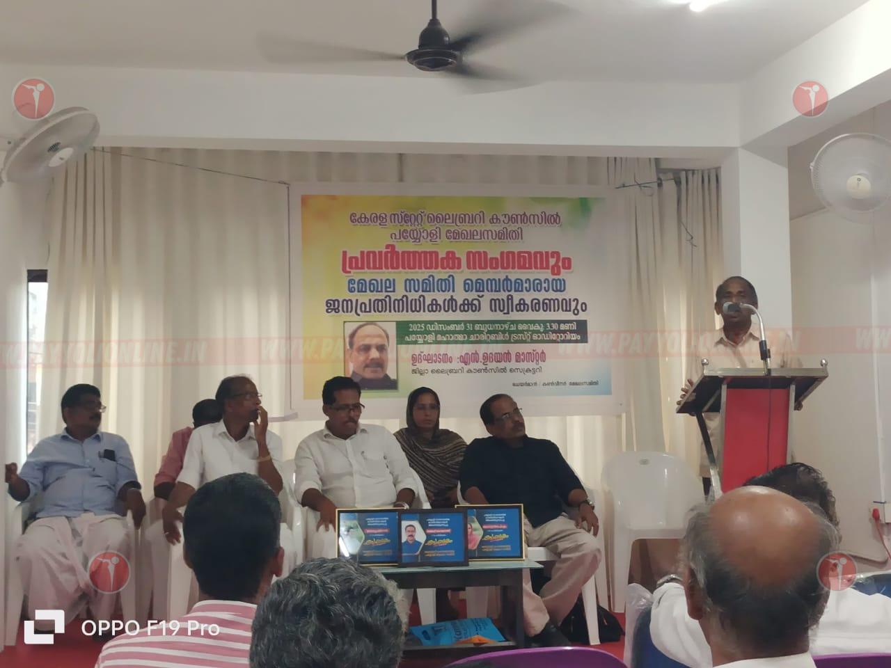 പയ്യോളി : ലൈബ്രറി കൗൺസിൽ പയ്യോളി മേഖലാ സമിതിയുടെ ആഭിമുഖ്യത്തിൽ ലൈബ്രറി പ്രവർത്തക സംഗമവും പയ്യോളി നഗരസഭ കൗൺസിലർമാരായി തെരെഞ്ഞെടുക്കപ്പെട്ട മേഖലാ സമിതി മെമ്പർമാർക്ക് സ്വീകരണവും സംഘടിപ്പിച്ചു. ജില്ലാ ലൈബ്രറി കൗൺസിൽ സെക്രട്ടറി എൻ ഉദയൻ മാസ്റ്റർ ഉദ്ഘാടനം ചെയ്തു. കൗൺസിലർമാരായ കെ ജയകൃഷ്ണൻ, രാജേഷ് കൊമ്മണത്ത്, പി എം ഹൈറുന്നീസ എന്നിവരെ പൊന്നാട അണിയിച്ചും മൊമെന്റോ നൽകിയും സ്വീകരിച്ചു.മേഖലാ സമിതി ചെയർമാൻ പി എം അഷ്റഫ് അധ്യക്ഷനായിരുന്നു.