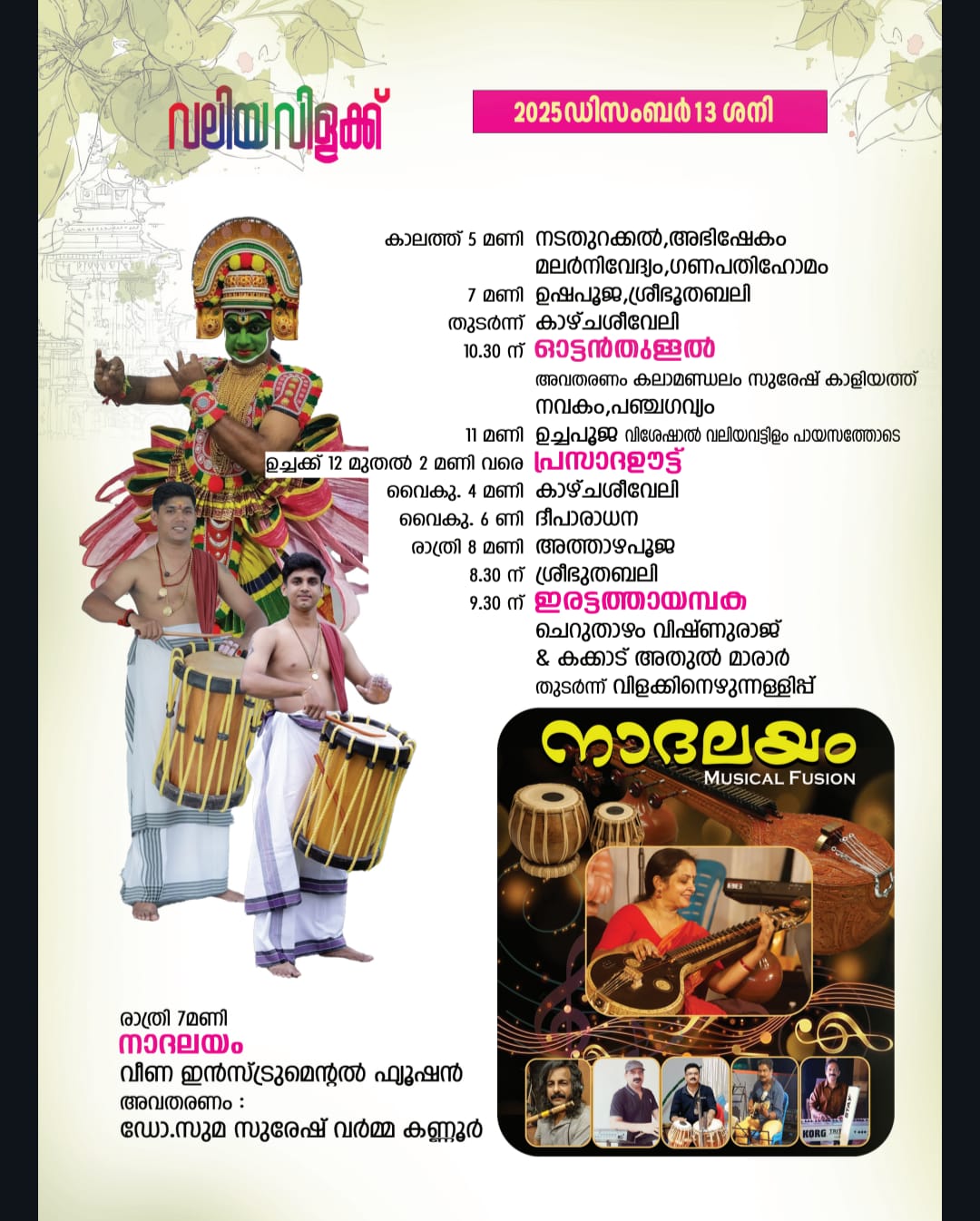 - ശ്രീ കീഴൂർ മഹാ ശിവക്ഷേത്രം ; ആറാട്ട് മഹോത്സവം – ഡിസംബർ 13 ശനി