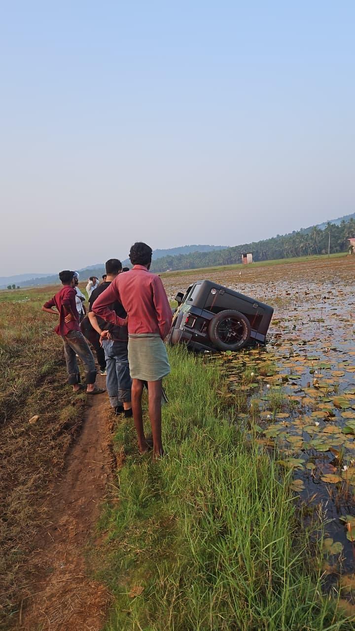 ചെരണ്ടത്തൂർ വയലിലേക്ക് ജീപ്പ് തെന്നി മറിഞ്ഞ് അപകടം- വീഡിയോ