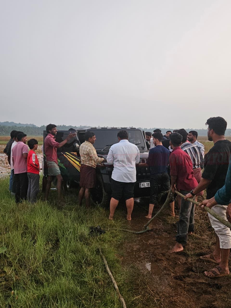 വടകര: ഇന്ന് വൈകുന്നേരം അഞ്ചരയോടെയാണ് ചെരണ്ടത്തൂർ വയലിലേക്ക് എത്തിയ നാദാപുരം സ്വദേശികളുടെ ജീപ്പ് വയലിലേക്ക് മറിഞ്ഞ് അപകടം ഉണ്ടായത്. പൂർണ്ണമായി വെള്ളം ഇറങ്ങാത്ത വയലിൽ കൂടിയുള്ള മൺപാതയിൽ നിന്നും ജീപ്പ് തെന്നി പാടത്തേക്ക് മറിയുകയായിരുന്നു. അപകടത്തിൽ ആർക്കും പരിക്കില്ല. ജീപ്പ് നാട്ടുകാർ കയറി കെട്ടി വലിച്ചു കരക്ക് കയറ്റുകയായിരുന്നു.
